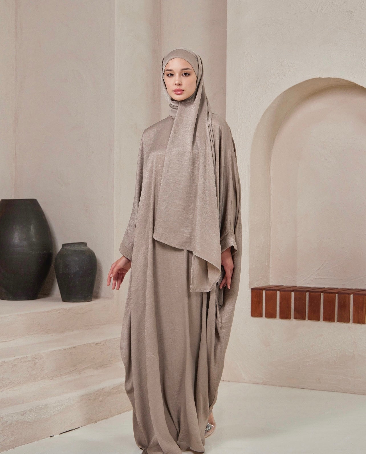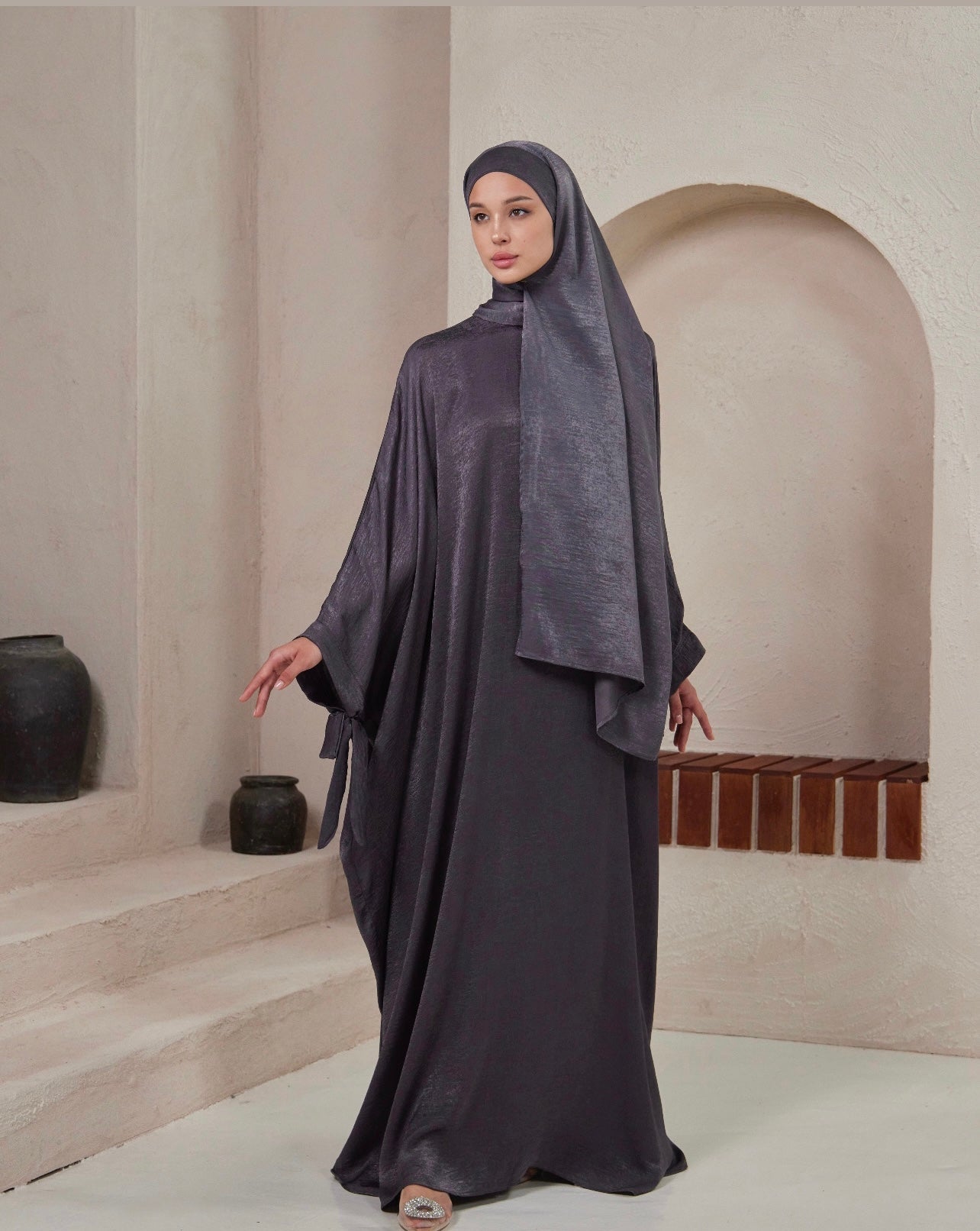 β’ Includes abaya and matching instant tie-back shawl