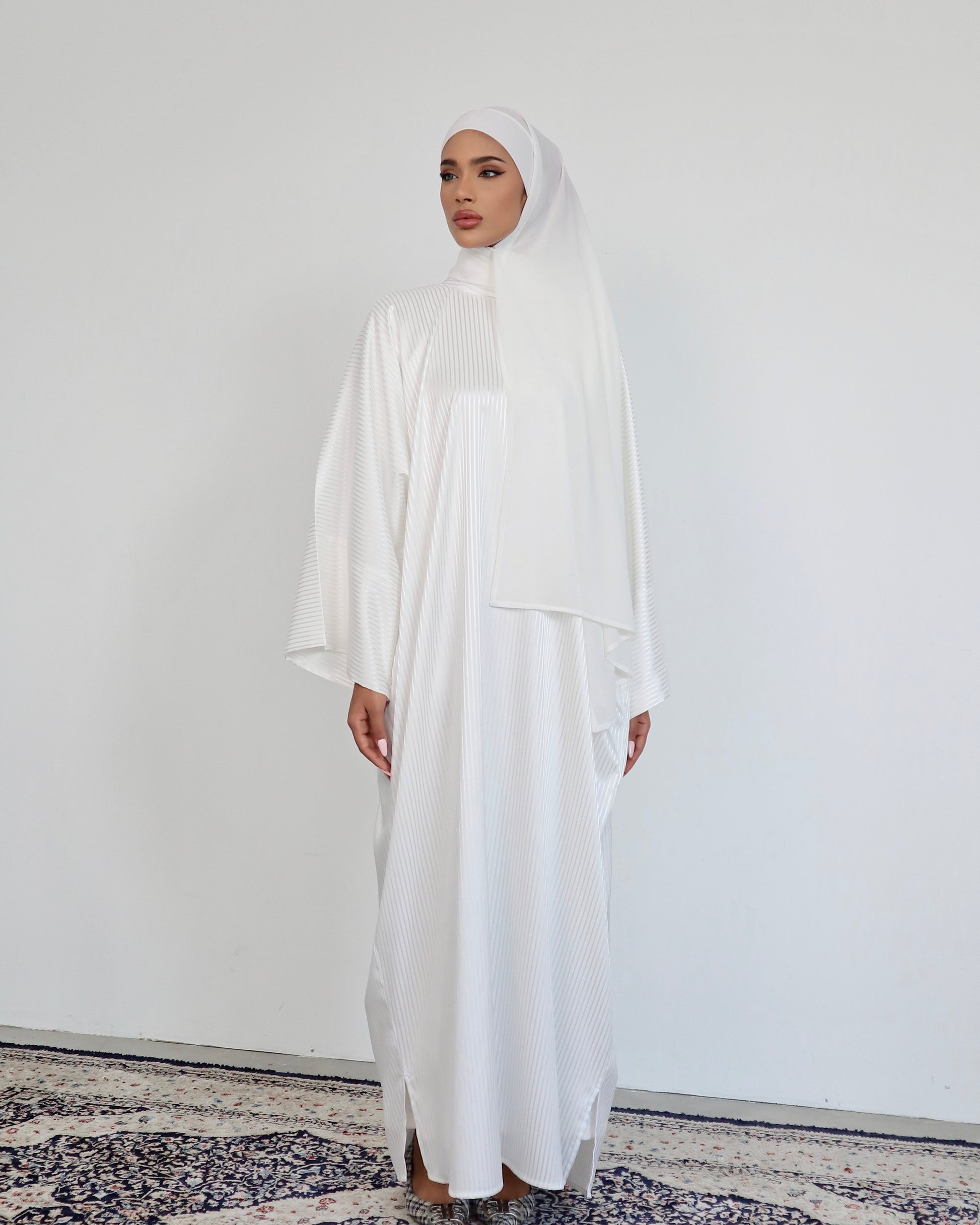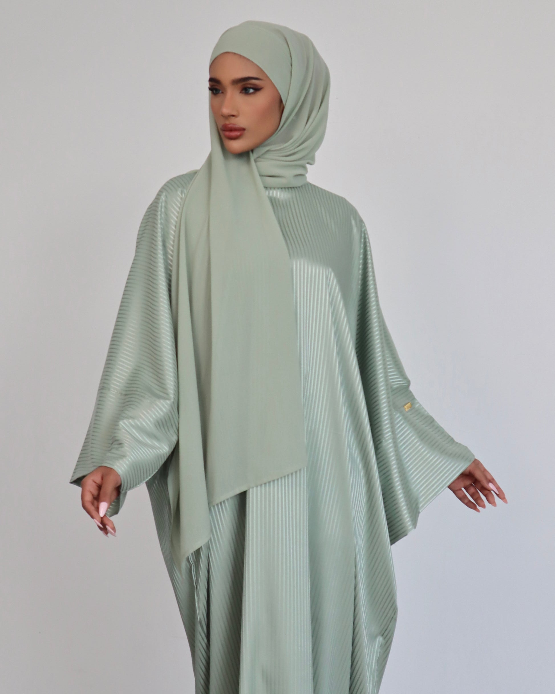 The silky stripes abaya is a masterpiece of elegance and luxury, crafted from satin to drape gracefully. The abaya's silhouette is tailored to perfection, ensuring a flattering fit for all body types.