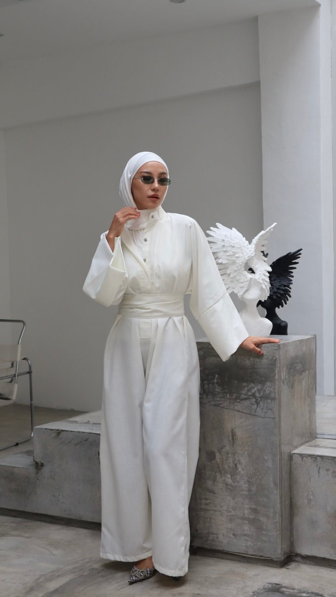 Crafted from breathable cotton linen, the Samma Jumpsuit features a kimono-inspired neckline, full button-down front, and wide-leg silhouette. Wear it loose or cinched with the detachable belt for a clean, effortless look — perfect for work, weekends, or anything in between.